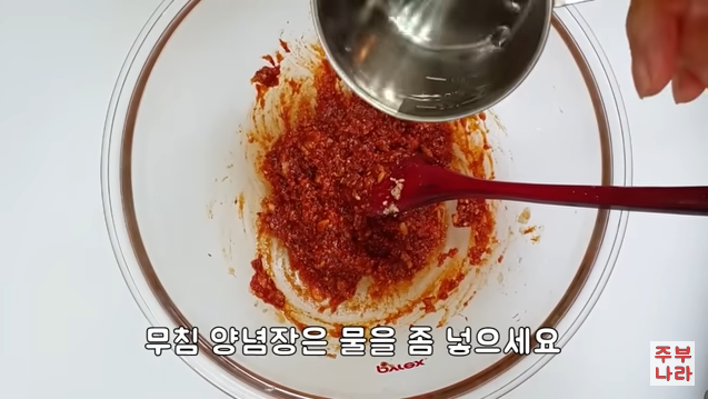 두번째 요리는 바로 가능합니다. 무침 양념에 물을 좀 넣어 살짝 묽게 만들어주세요.