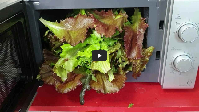 그리고 상추를 전자레인지에 넣어 2분 동안 돌려주세요.