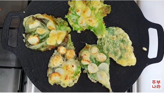 비주얼 끝내주지 않나요? 맥주나 막걸리 안주로 손색없는 상추마늘전입니다.