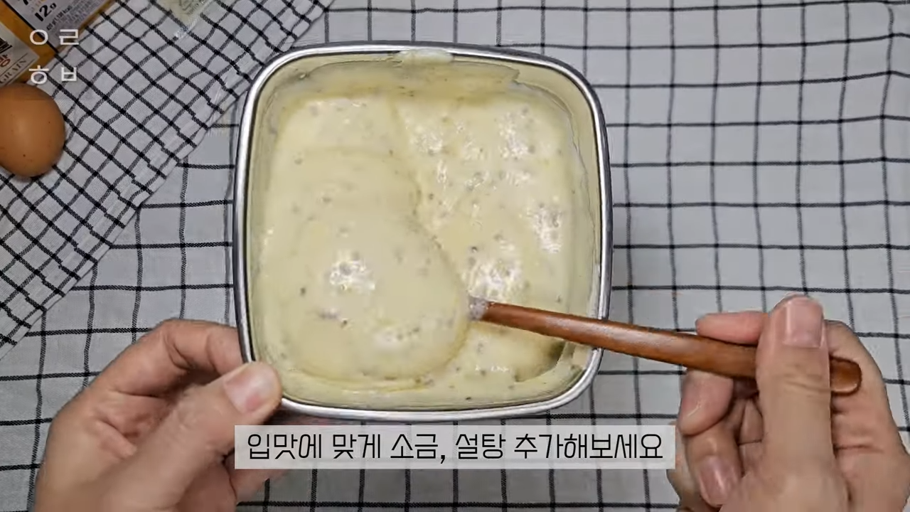 골고루 섞은 후에 맛을 보고 취향에 맞게 소금이나 후추로 간을 맞춥니다.
